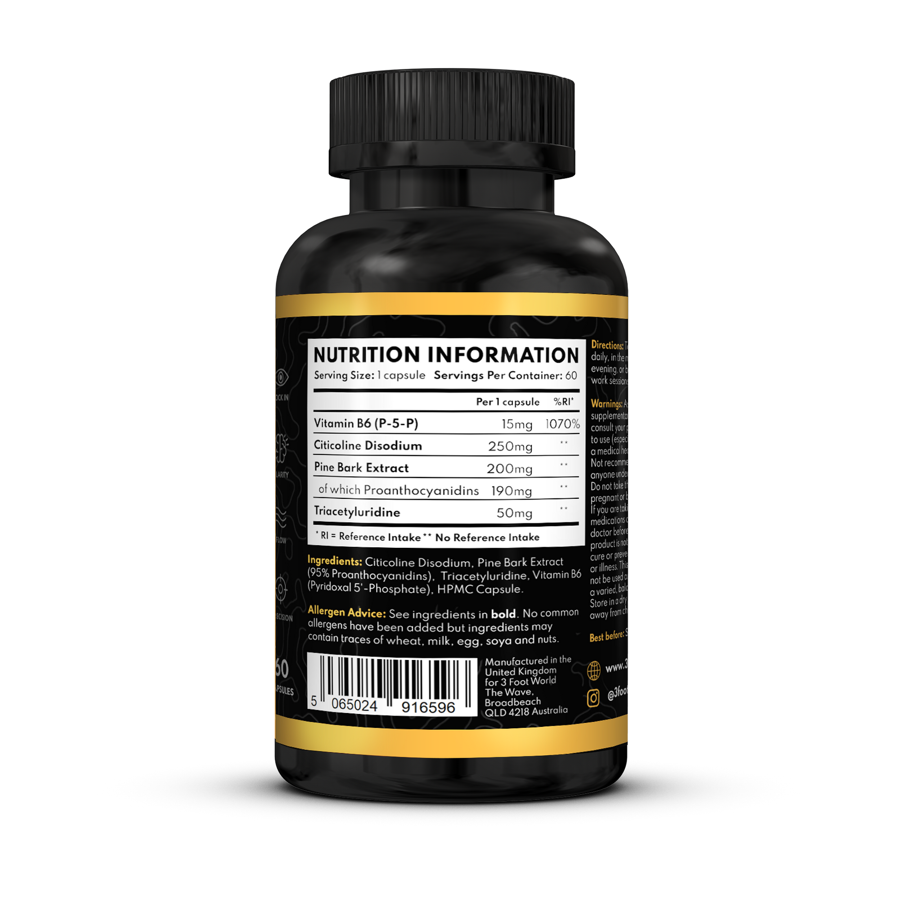 Citicoline disodium, Pine Bark Extract (95% Proanthocyanidins), Triacetyluridine, Pyridoxal 5'-Phosphate, HMPC Capsule.